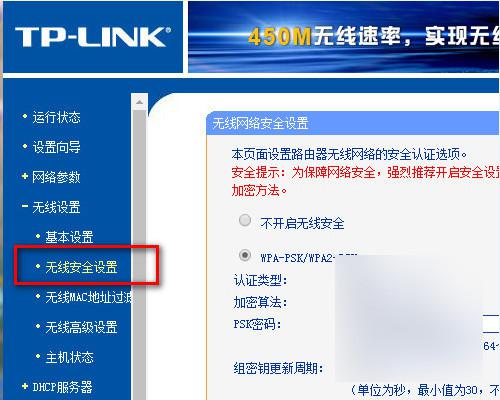 5、再点击“无线安全设置”,里面就可以更改密码了,一般选择WPA-PSK/WPA2-PSK加密方法(密码要8-16个的,可以字母数字组合)。