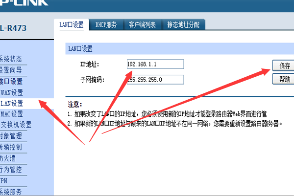4、然后在点击LAN设置,将路由器默认的192.168.1.1修改为192.168.124.1,点击保存按钮,该路由器就已经设置好了上网以及需要修改的IP地址了。
